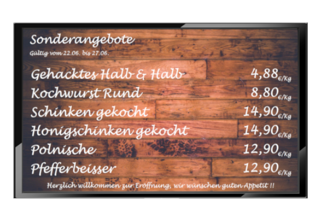 • Werbemonitor für Sonderangebote und Happy Hour Aktionen